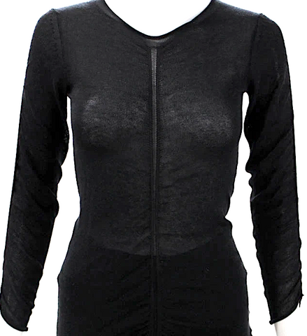 Helmut Lang NY. Black Vintage V-Neck 3/4 Sleeve Silk Blend Top