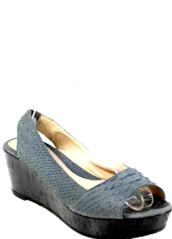 Fendi Italy. Gray Wedge Heel Platform Snake Embossed Slingback Sandals Size 40