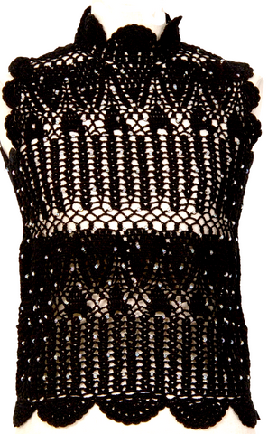 GRACE CONTINENTAL JAPAN. GRACE CLASS. Beads Decoration Black Macrame Knit Sleeveless Lace Top