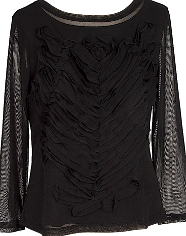 HIROKO KOSHINO HIROKO BIS JAPAN. Black Mesh Front Crepe Design Shirt