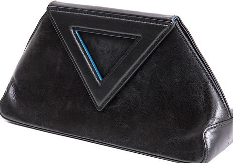 ISSEY MIYAKE JAPAN. Black Triangle Flap Leather Clutch Bag