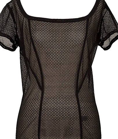 DONNA KARAN NEW YORK.. Black Mesh Switching Top