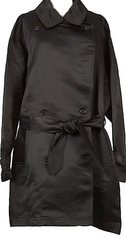DONNA KARAN NY. DKNY ESSENTIALS Black Silk Satin Double Belted Coat