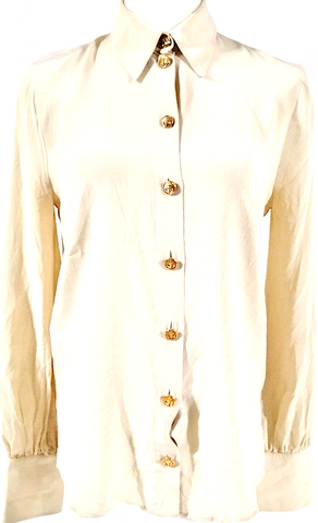 Gucci Italy. Vintage Neutrals Color Silk Gold Button Top