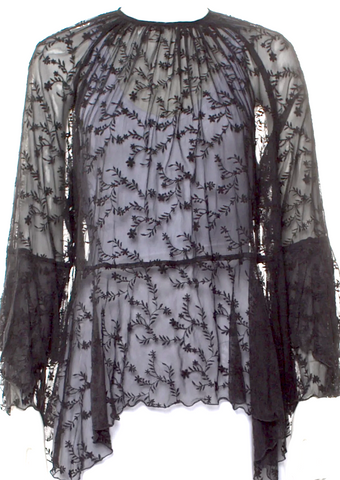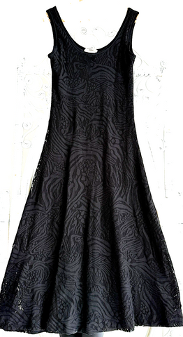 JEAN PAUL GAULTIER PARIS. FUZZI. Fuzzi Black Lace Mesh A Line Maxi Dress