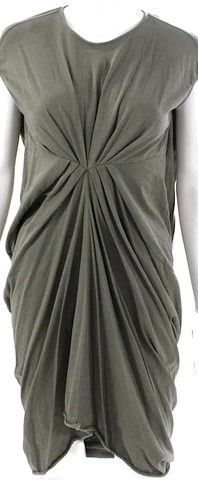 Rick Owens Paris. Lilies Green Cotton Short Sleeve Ruched Dress
