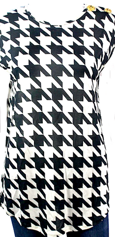 BALMAIN PARIS. B/W Houndstooth Pattern Sleeveless Top
