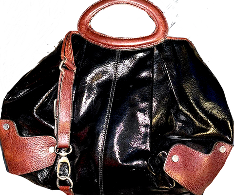 MARNI ITALY. Black Patent Leather/Brown Leather Accents Shoulder Bag / Tote Bag