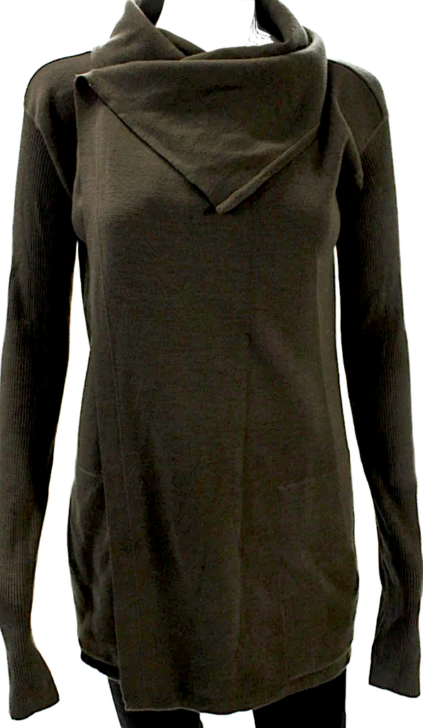 Rick Owens Paris. Brown Ribbed Long Sleeve Open Front Cardigan Sweater
