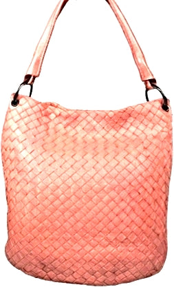 Bottega Veneta Italy. Rare Pink intrecciato Leather Bucket Hobo Style Oval Base Shoulder Bag