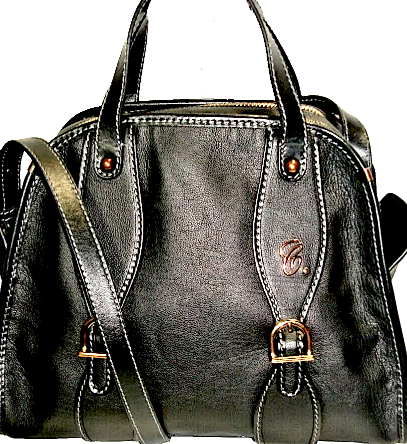 Accents Brass Hardware With a C. in Script On FrontContrast Stitching Detail