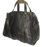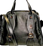 Chloe Paris. Black/Dark Gray Leather Contrast Stitching Side Pockets Shoulder Bag / Crossbody Bag