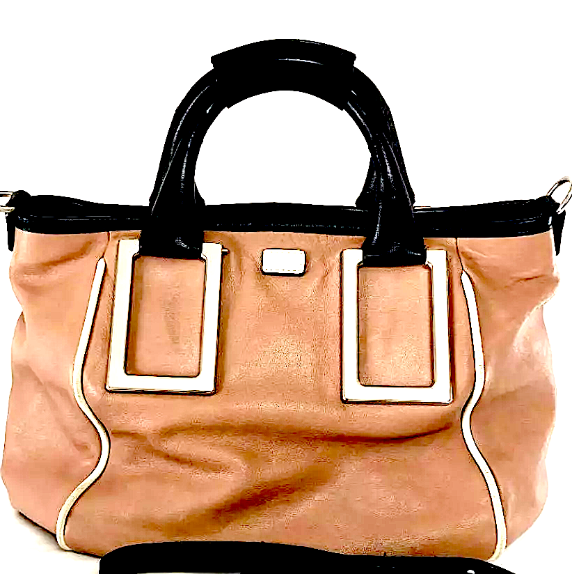 Chloe Paris. Medium Pink Beige Leather Goldplating Shoulder Bag / Crossbody Bag