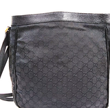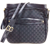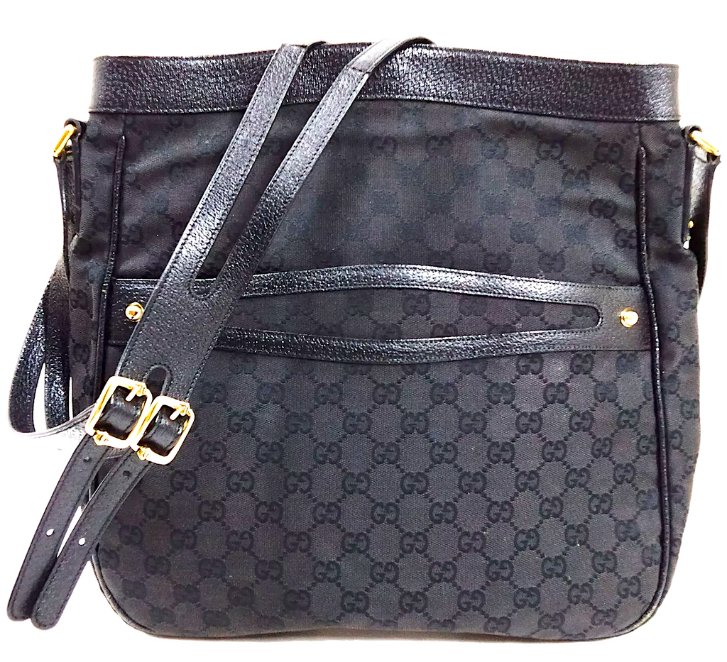 Gucci Italy. Black Leather/Canvas Logos Long Strap Shoulder Bag