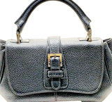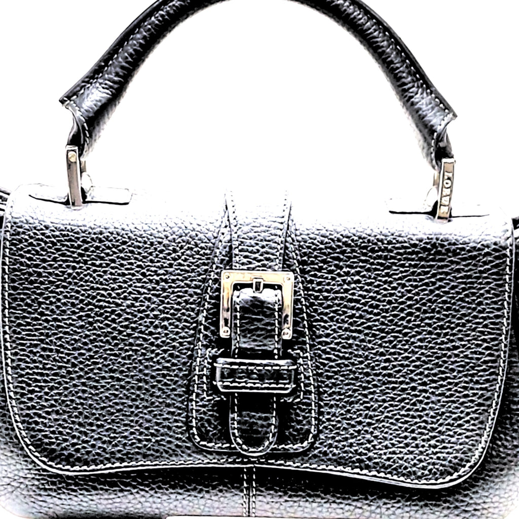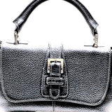 LOEWE MADRID. Black Pebbled Leather Silver Hardware Mini Shoulder Bag