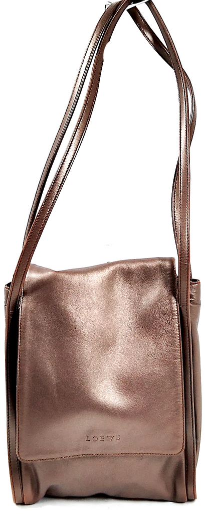LOEWE MADRID. Brown/Bronze Leather Messenger Style Shoulder Bag
