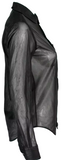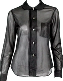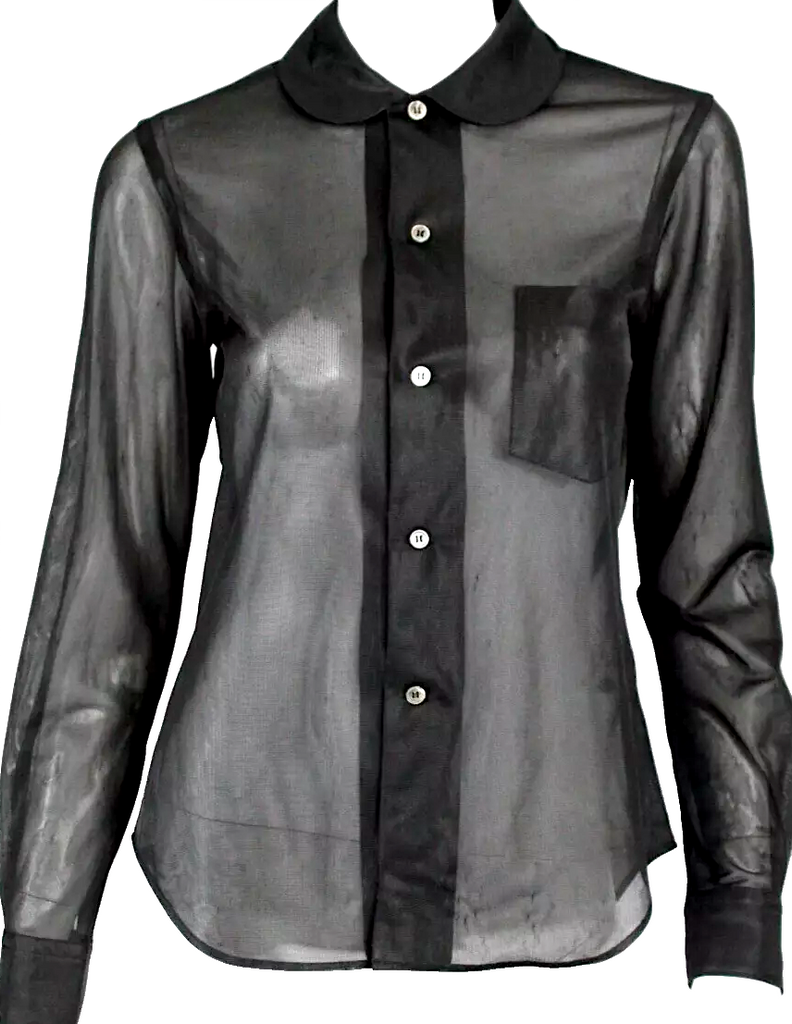 Add a fashionable top to your wardrobe with this Comme des Garcons black sheer jersey Peter Pan collar button-front blouse!