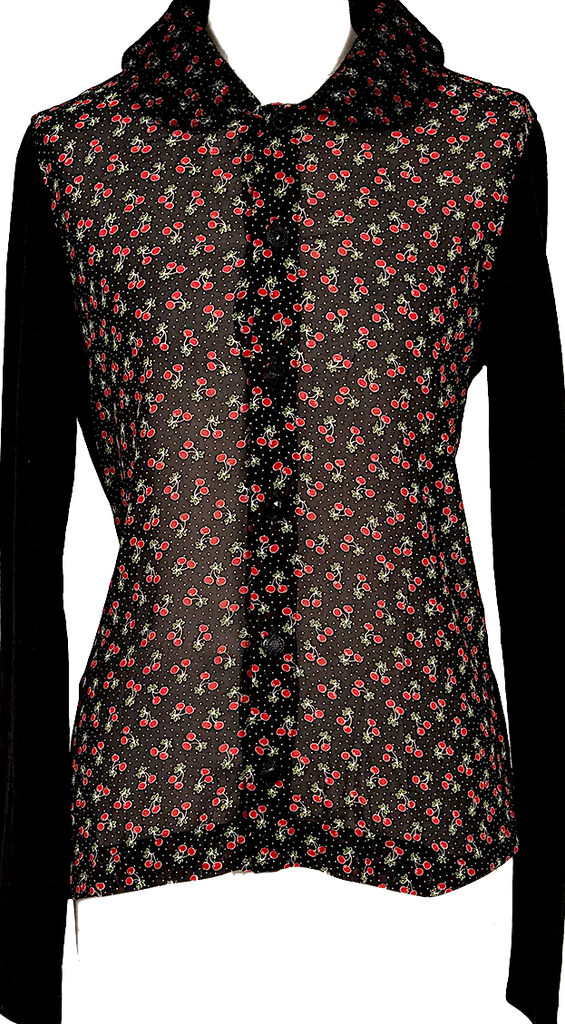 COMME des GARCONS JAPAN. TRICOT. Cherry Printed Black Wool Shirt