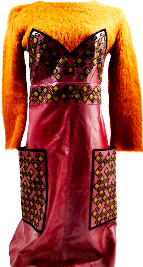 Bottega Veneta Italy. Vintage Leather, Nylon, Silk, Wool Mohair Alpaca Dress