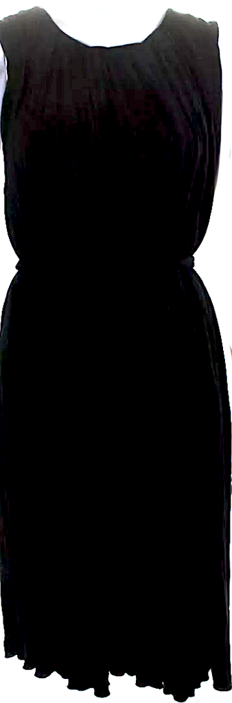 Chloe Paris. Black Sleeveless Round Neck Pleated Shift Midi Tank Dress