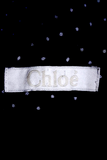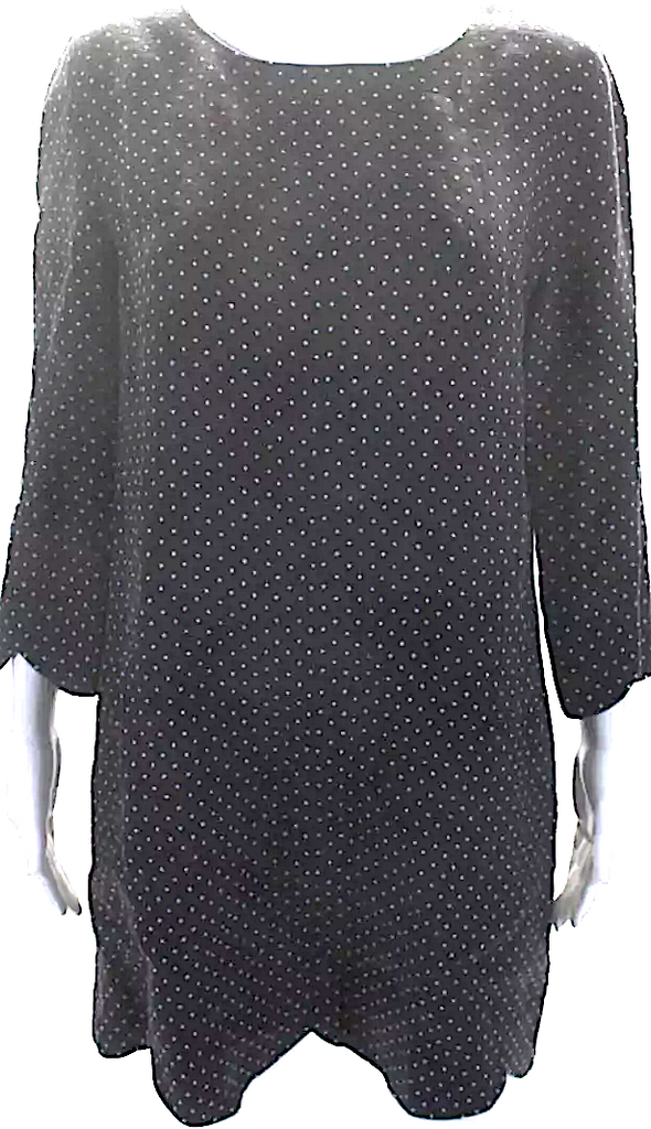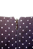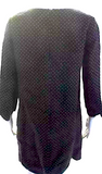 Chloe Paris. Dark Navy Linen Long Sleeve Polka Dot Scallop Trim Shift Dress