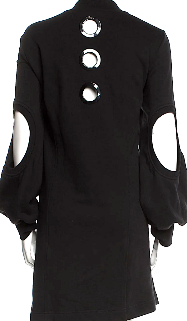 Diesel Glenn Martens. Black Cotton Knit Ornamented Back Side Crew Neck Mini Dress