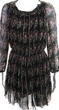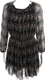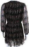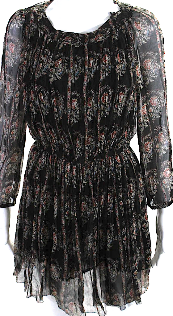 Isabel Marant Etoile Paris. Black Silk Floral Long Mesh Sleeved Dress