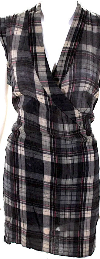 Isabel Marant Etoile Paris. Grey Plaid Sleeveless V Neck Dress