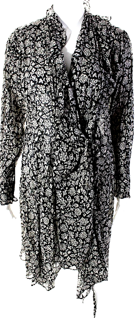 Isabel Marant Paris. Black Cotton Floral Ruffle V-neck Long Sleeve Wrap Dress