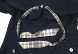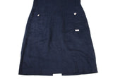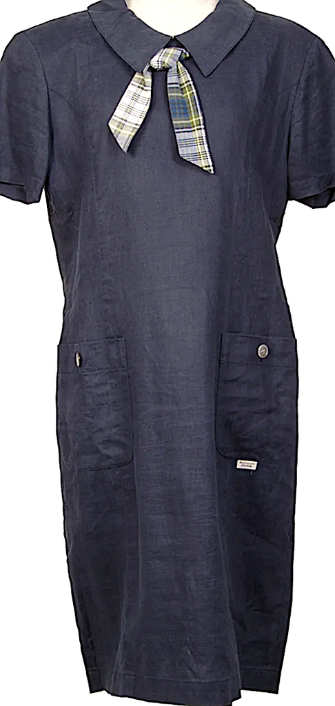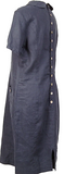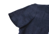 Mademoiselle NON NON Japan. Navy Back Button Short Sleeves Linen Dress