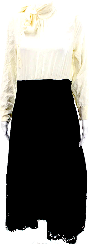 Miu Miu Italy. Cream Top/Black A-Line Dress Long Sleeve High Neck Dress