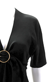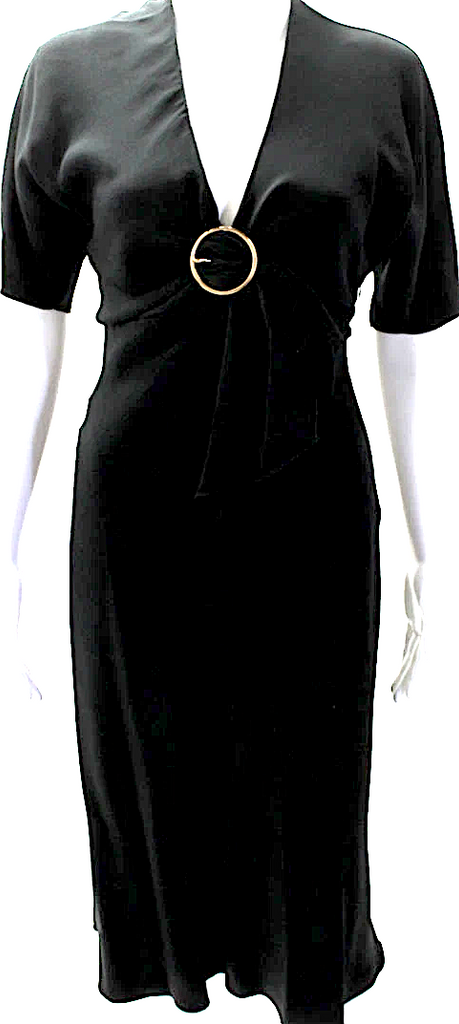 Prada Italy. Black Short Sleeve V Neck Knee Length Silk Shift Dress