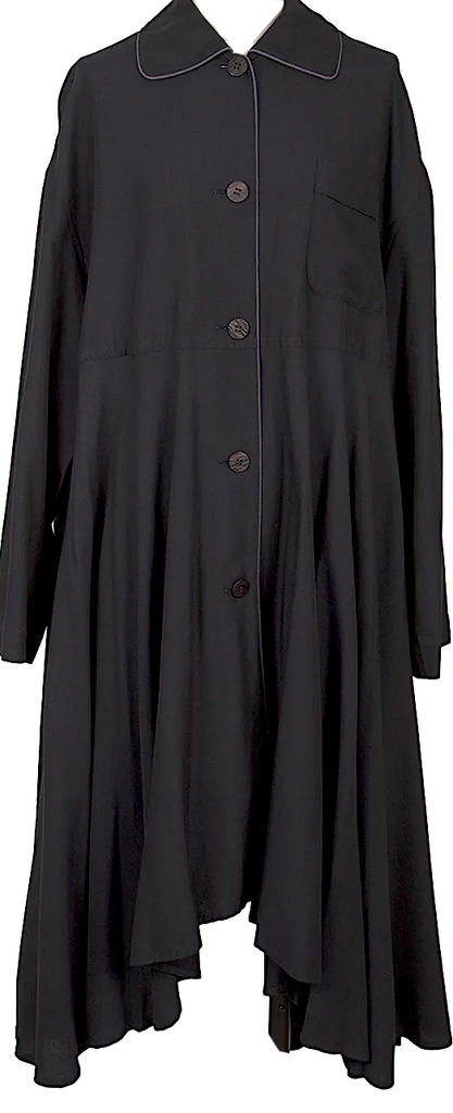 ROMEO GIGLI ITALY. Navy Piping Rayon Drape Shirt Dress