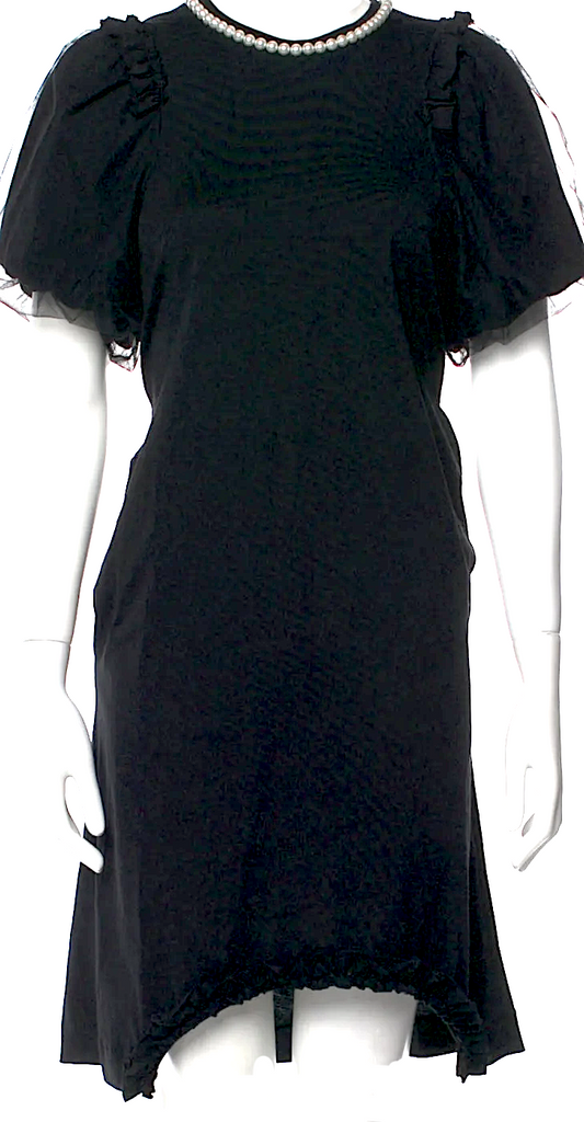Simone Rocha UK. Black PolyTech Pearls Neck Embellishment Knee-Length Dress