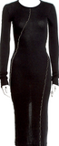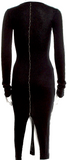 Helmut Lang Black Outseam Cotton BodyCon Crew Neck Midi Length Dress
