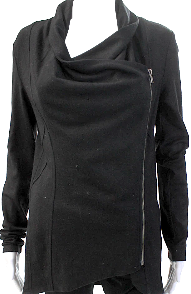 Helmut Lang Black Wool Asymmetric Zip Up Collared Jacket