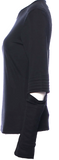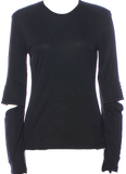 Helmut Lang NEW W/TAGS. Black Lyocell Elbow Cut-Out Accent Crew Neck Long Sleeve Top