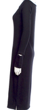 Helmut Lang NY. Black Nylon/Wool Blend Midi Length Dress