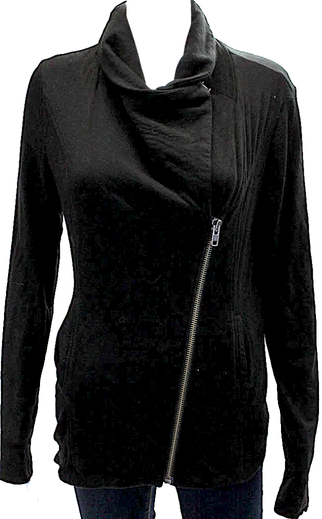 Helmut Lang NYC. Black Ramie Wool High Neck Two Pocket Long Sleeve Zip Up Jacket