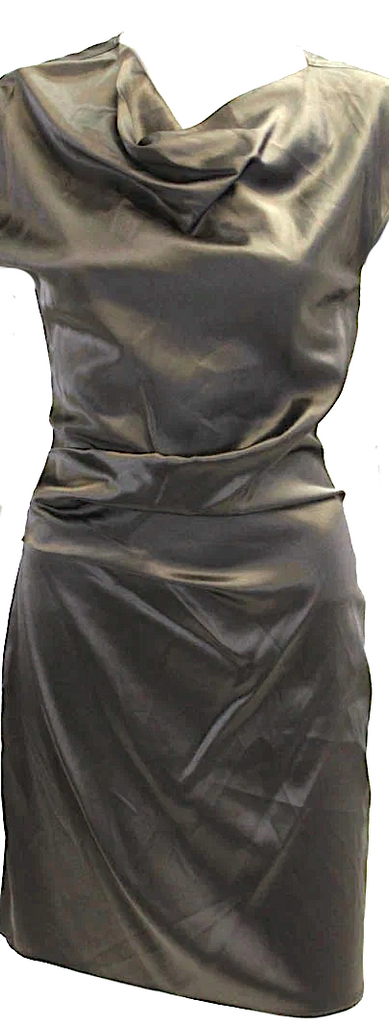 Helmut Lang NYC. Brown Silk Side Zip Cap Sleeve Scoop Neck Mini Dress