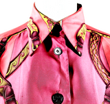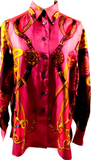 Hermes Paris. Vintage Silk Burgundy Scarf Print Button Top