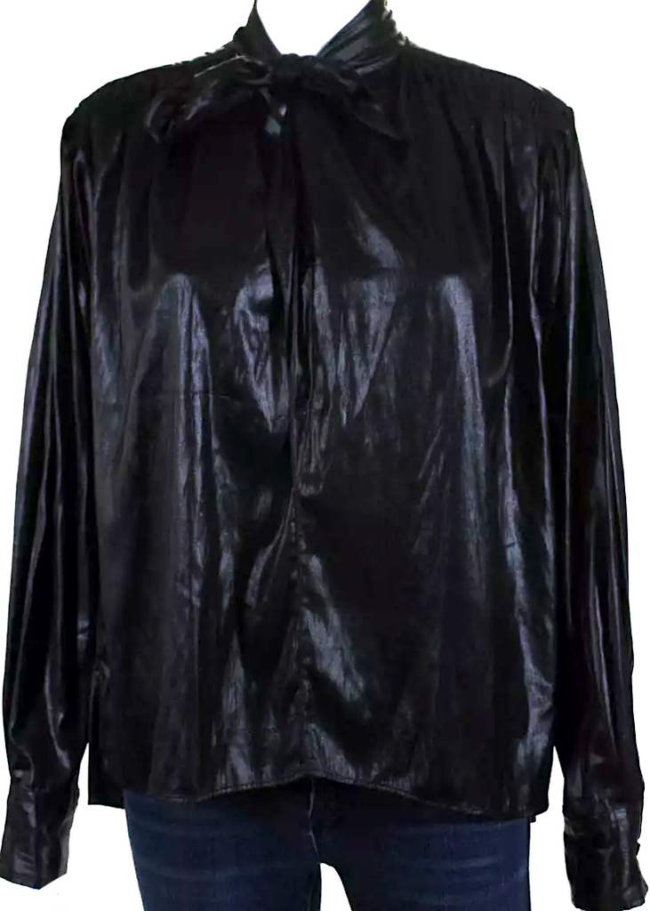 Isabel Marant Paris. Black Long Sleeves Button Down Shiny Blouse