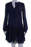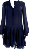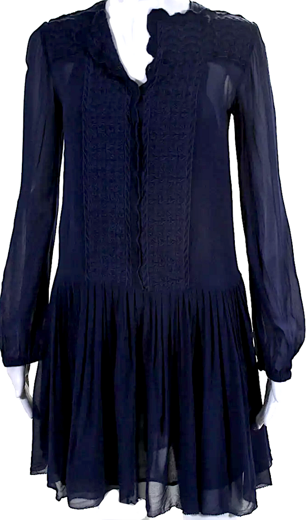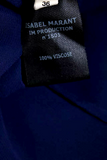 Isabel Marant Paris. Blue Viscose Long Sleeve Pleated Embroidered Shift Dress