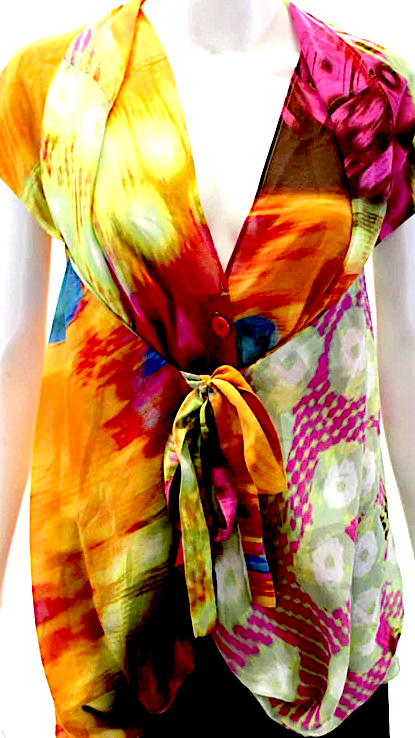 Issey Miyake Japan. Cotton Abstract Short Sleeved Buttoned Multicolored Shirt