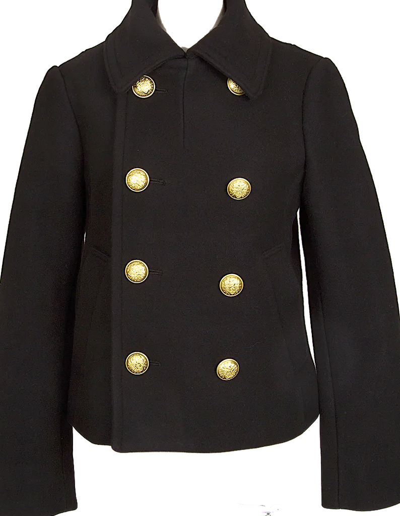 ISSEY MIYAKE JAPAN. sunaokuwahara Black Lamb Wool Blend Lining Tape Design Peacoat