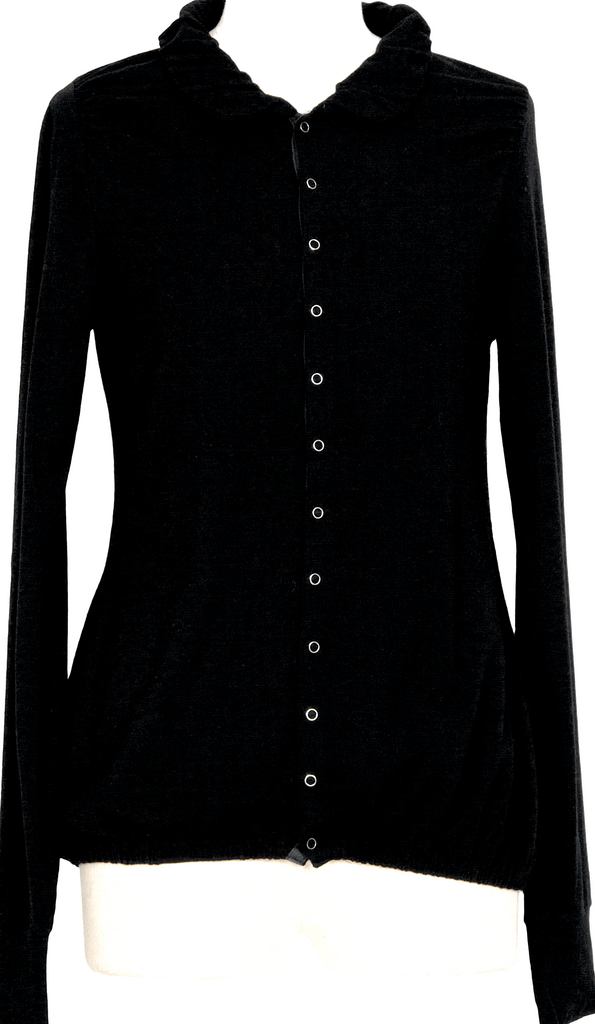 ISSEY MIYAKE JAPAN. Sunaokuwahara I.S. Black Rayon Round Collar Stretch Shirt