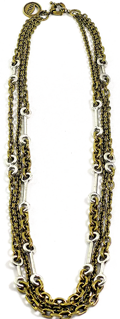 Giles & Brother G&B NY. PHILIP CRANGI DESIGNER. Multi Chain Brass & Silver Tone Triple Layered Necklace