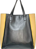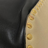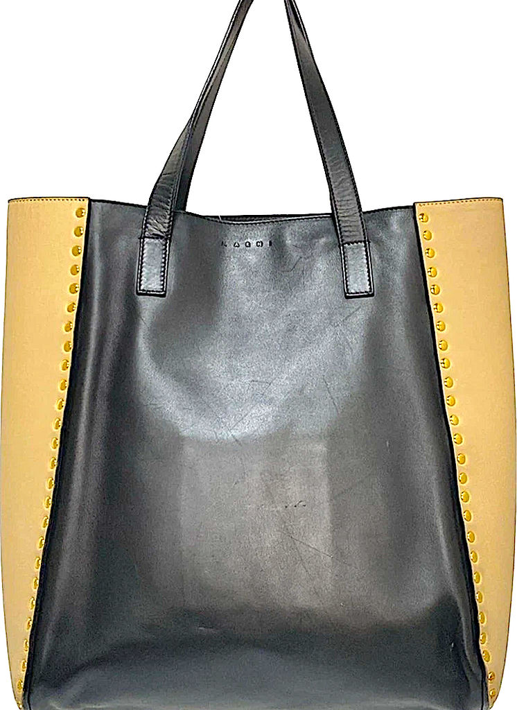 MARNI ITALY. Black Beige Leather w Gold Studded Accents Tote Bag / Shoulder Bag