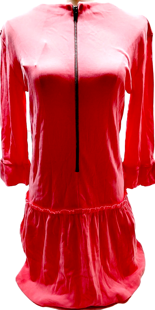 Miu Miu Italy. Pink Cotton Zipper Front Mini Dress