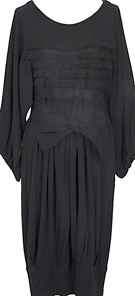 A/T ATSURO TAYAMA JAPAN. Black Frill Tuck Knit Dress